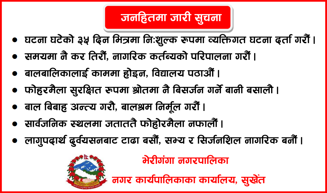 सुर्खेत । लैङ्गिक हिंसा विरुद्धको १६ दिने अभियानको अवसरमा नेपाल रेडक्रस सोसाइटी कर्णाली प्रदेश कार्यालयले... ।