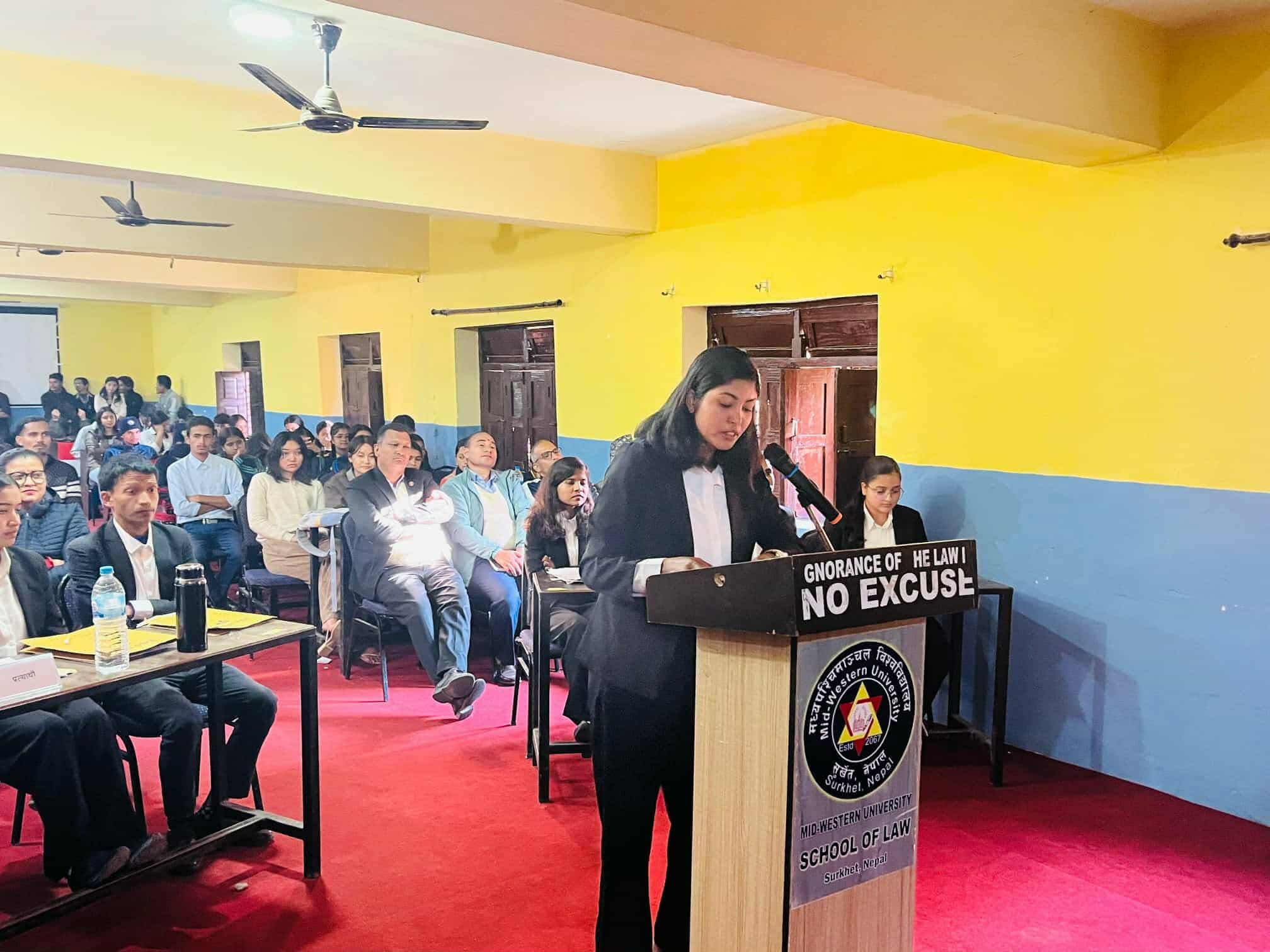 सुर्खेत । मध्यपश्चिम विश्वविद्यालयमा पहिलो एफएसयू अभ्यास अदातल प्रतियोगिता सम्पन्न भएको छ । मध्यपश्चिम विश्वविद्यालय... ।
