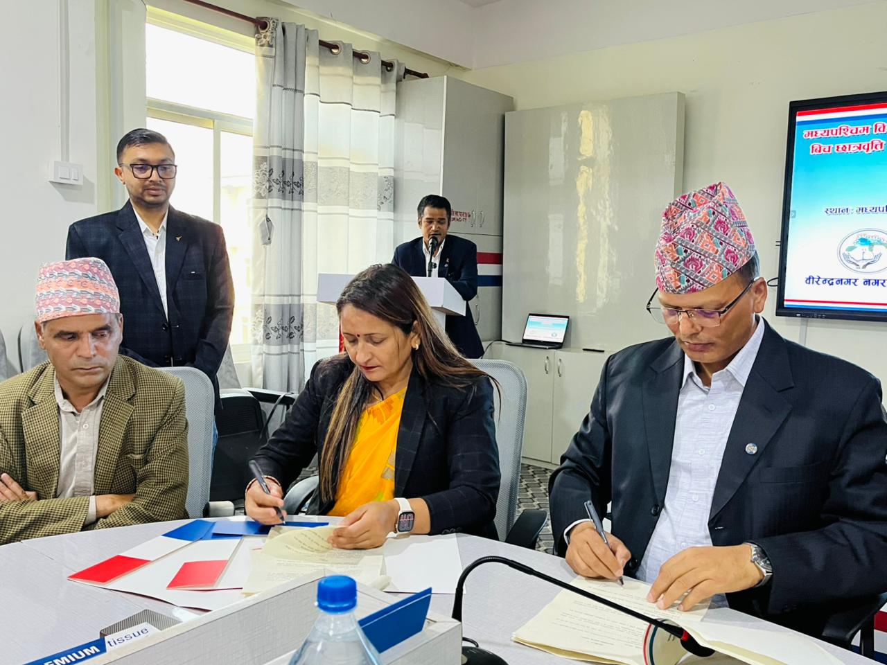 मध्यपश्चिम विश्वविद्यालय र वीरेन्द्रनगर नगरपालिकाबीच सम्झौता, दुई करोड बढीको छात्रवृत्ति कोष स्थापना